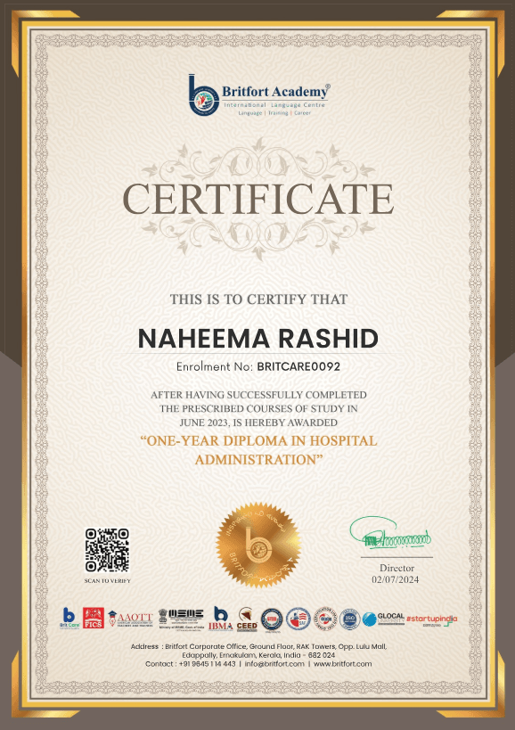 Issued to: Naheema Rashid