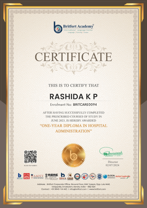 Issued to: Rashida KP