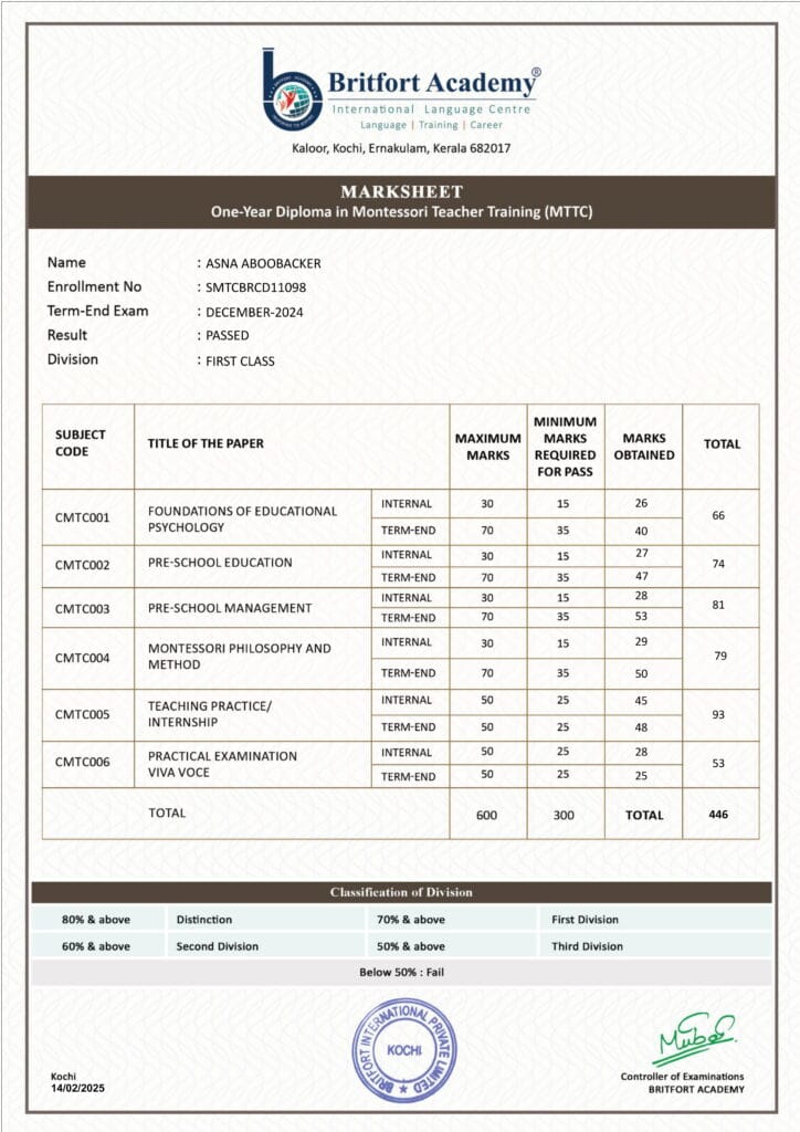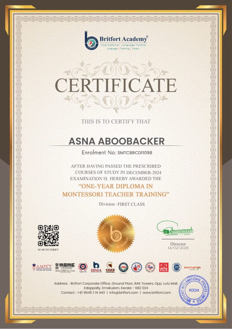 Verified ✅Issued by: Britfort AcademyIssued on: 14/02/2025Issued to: Asna AboobackerRegister number: SMTCBRCD11098