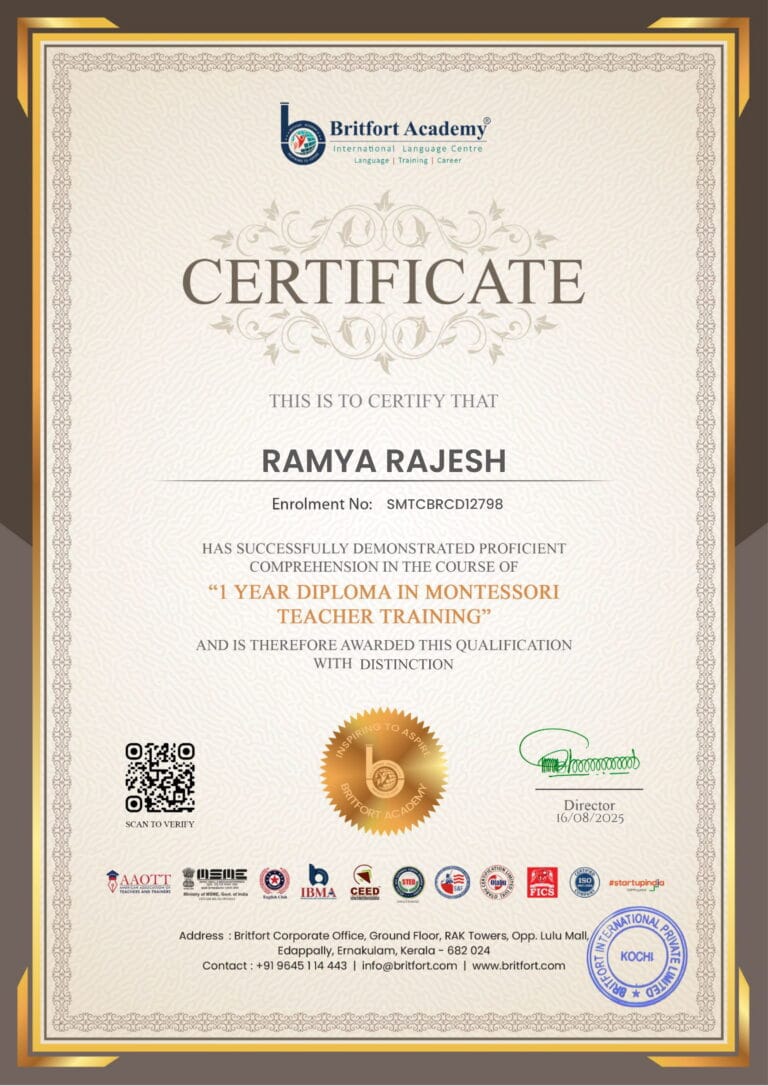 Verified Issued by: Britfort AcademyIssued on: 16/08/2025Issued to: Ramya RajeshRegister number: SMTCBRCD12798