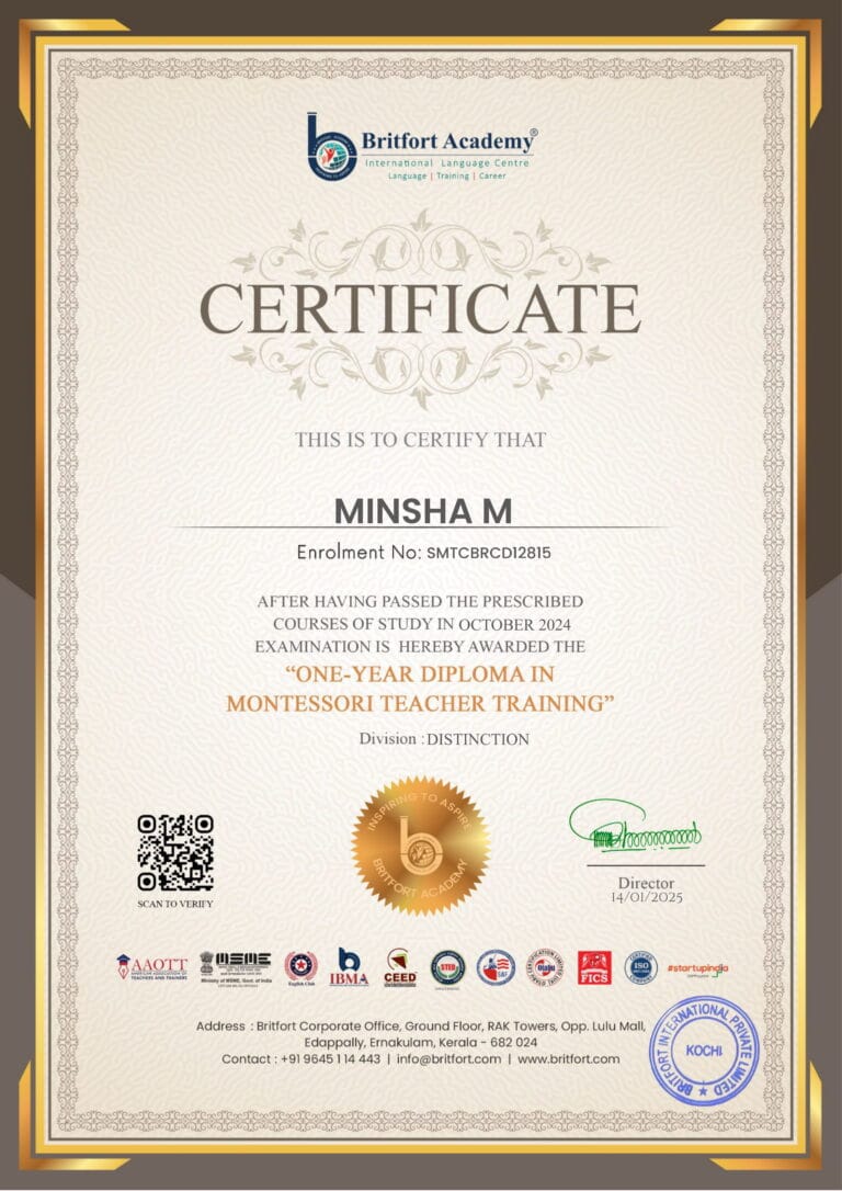 Verified ✅Issued by: Britfort AcademyIssued on: 14/01/2025Issued to: Minsha MRegister number: SMTCBRCD12815