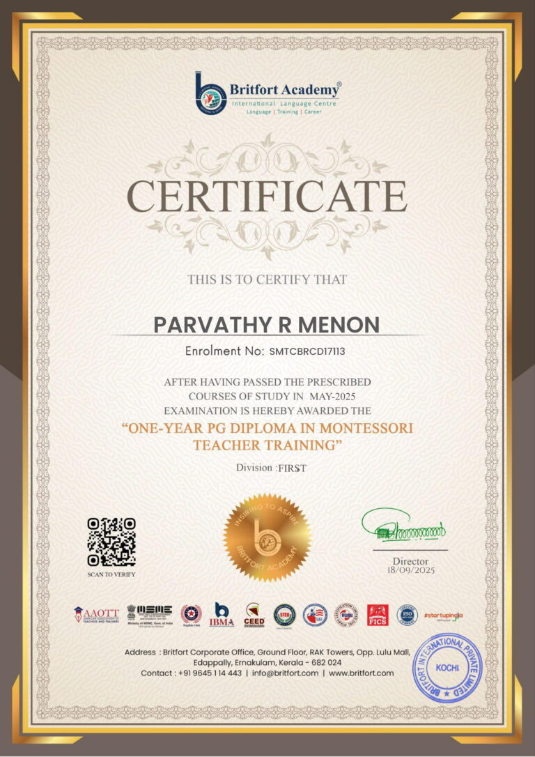 Verified ✅Issued by: Britfort AcademyIssued on: 18/09/2025Issued to: Parvathy R MenonRegister number: SMTCBRCD17113