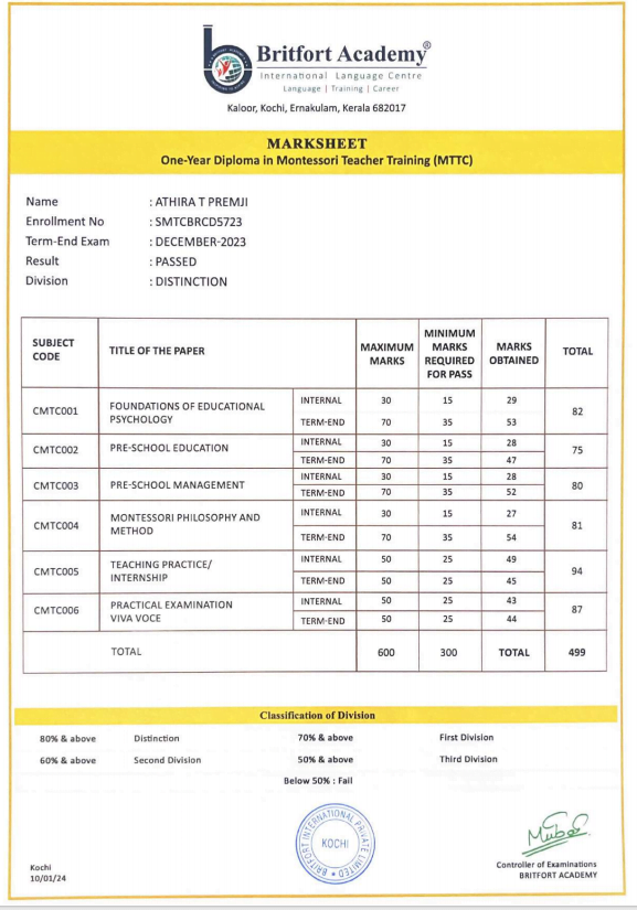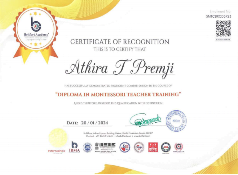 Verified ✅Issued by: Britfort AcademyIssued on: 20/01/2024Issued to: Athira T PremjiRegister number: SMTCBRCD5723