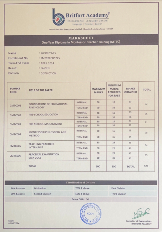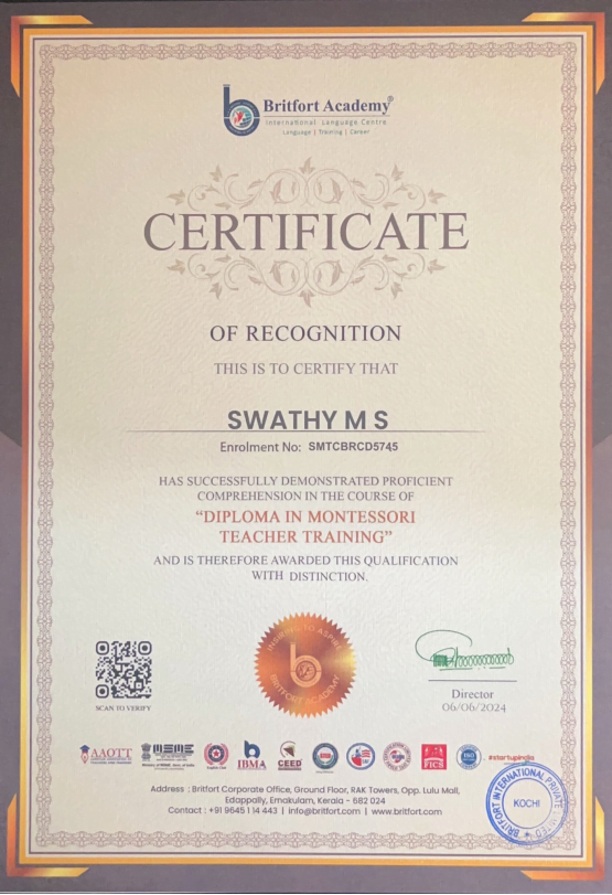 Verified ✅Issued by: Britfort AcademyIssued on: 06/06/2024Issued to: Swathy MSRegister number: SMTCBRCD5745