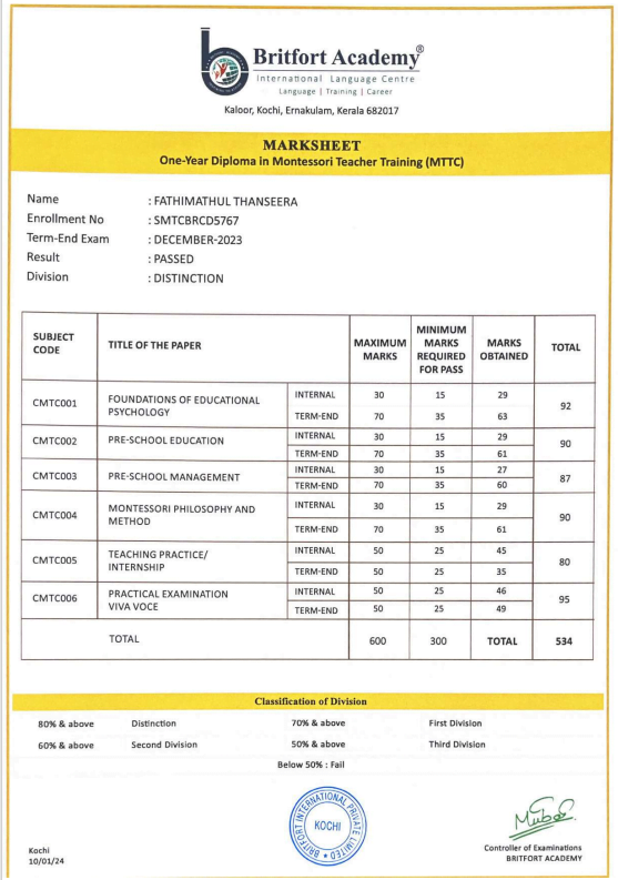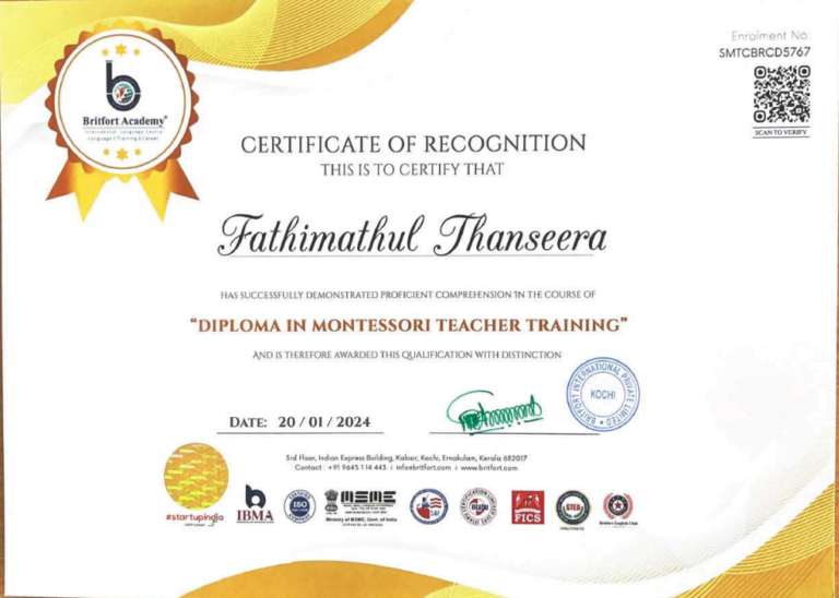 Verified ✅Issued by: Britfort AcademyIssued on: 20/01/2024Issued to: Fathimathul ThanseeraRegister number: SMTCBRCD5767