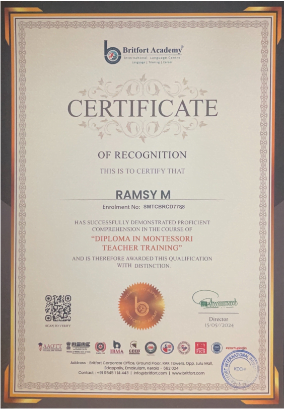 Verified ✅Issued by: Britfort AcademyIssued on: 15/05/2024Issued to: Ramsy MRegister number: SMTCBRCD7788