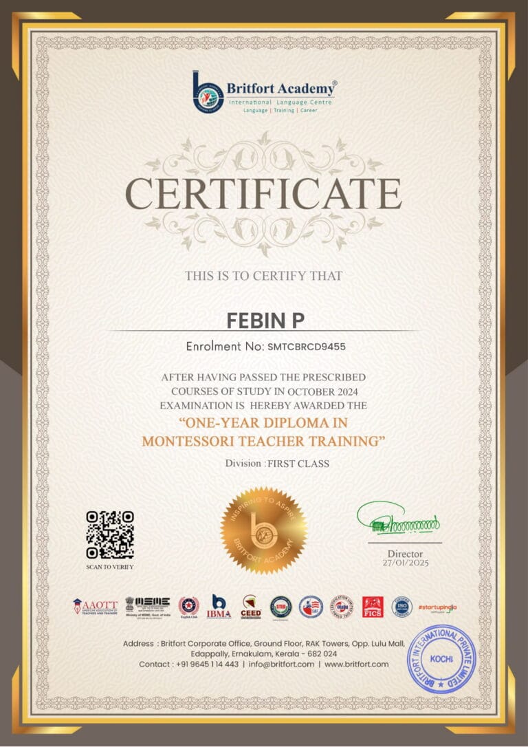 Verified ✅Issued by: Britfort AcademyIssued on: 27/01/2025Issued to: Febin PRegister number: SMTCBRCD9455